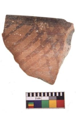 | Description / विवरण | Specimen of potsherd with decorative geometric painting. Type Black on Red Ware . |
