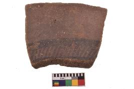 | Description / विवरण | Specimen of black on red ware with decorative geometric Oblique lines set in two horizontal bands painting. |