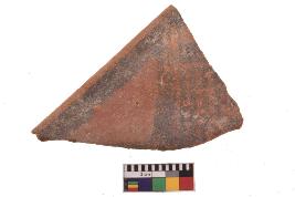 | Description / विवरण | Specimen of black on red ware with decorative geometric A row of latticed diamonds set in horizontal bands but having groups of oblique lines at intervals painting. |