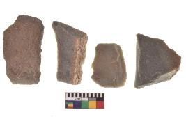 | Description / विवरण | There are n-4 of utilized flake cores. There are multidirectional irregular dominant scar pattern on both dorsal and ventral face of the cores. |