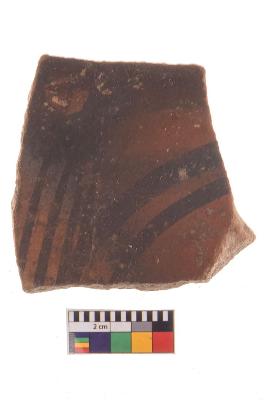 | Description / विवरण | Specimen of potsherd with black decorative geometric painting, Type Black on Red Ware . |