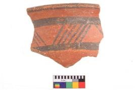 | Description / विवरण | Specimen of potsherd with decorative geometric painting. Type Black on Red ware |