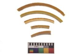 | Description / विवरण | Specimen n-5 having glossy yellow surface. They are circular in cross-section. A parallel groove passing through the middle portion of the bangle surface. |