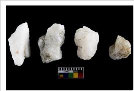 | Description / विवरण | Specimen of cores with weathered cortex and several broad fluted marks. Some of them are irregular in shape, whereas some are tapering at one end. |