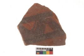 | Description / विवरण | Specimen of black on red ware with black decorative Joint triangles geometric painting. |