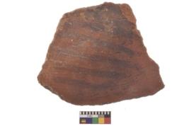 | Description / विवरण | Specimen of black on red ware with decorative geometric Net motif painting. |