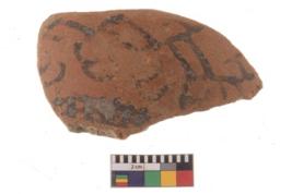 | Description / विवरण | Specimen of black on red ware with black decorative Lattice pattern and intersecting curved lines geometric painting. |