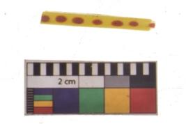 | Description / विवरण | Specimen n-1 having glossy yellow surface with dotted line decoration on it. It is circular in cross-section. |