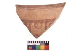 | Description / विवरण | Specimen of potsherd with decorative geometric painting. Type Black on Red Ware . |