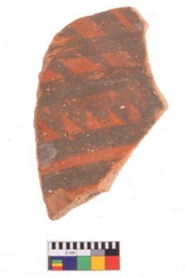 | Description / विवरण | Specimen of potsherd with decorative geometric painting. Type Black on Red ware |