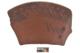 | Description / विवरण | Specimen of black on red ware with decorative geometric Oblique lines and arches painting. |