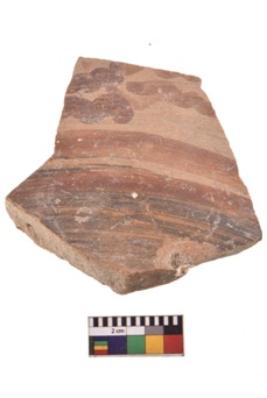 | Description / विवरण | Specimen of potsherd with decorative geometric painting. Type Black on Red Ware . |