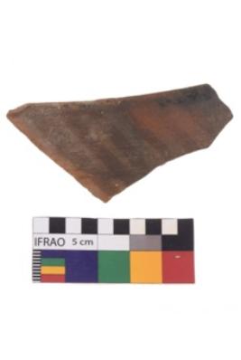 | Description / विवरण | Specimen of potsherd with black decorative linear painting . |