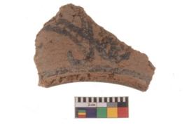 | Description / विवरण | Specimen of black on red ware with black decorative geometric painting. |