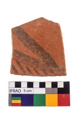 | Description / विवरण | Specimen of potsherd black on red painted pottery. It is fine fabric in sharp contrast with painted design are executed in black pigment. |