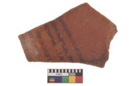| Description / विवरण | Specimen of black on red ware with decorative geometric Outcurved lines painting. |