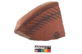 | Description / विवरण | Specimen of potsherd with black decorative geometric Linear painting, Type Black on Red Ware . |
