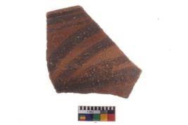 | Description / विवरण | A fragment of a potsherd. It is reddish in colour with black decorative animal painting on it. |