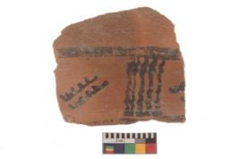 | Description / विवरण | Specimen of black on red ware with black decorative Parallel wavy lines geometric painting. |