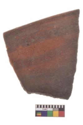 | Description / विवरण | Specimen of black on red ware with decorative geometric parallel lines painting. |