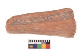 | Description / विवरण | A specimen of a potsherd. It is reddish in colour with black decorative geometric painting on it. |