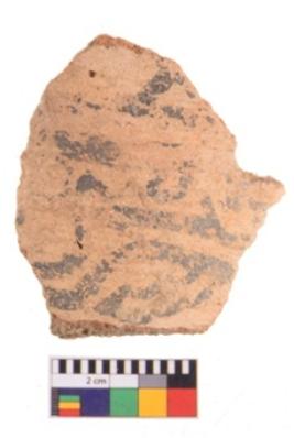 | Description / विवरण | Specimen of potsherd with decorative geometric painting. Type Black on Red ware |