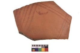 | Description / विवरण | Specimen of potsherd with decorative geometric painting. Type Red on Red Ware . |