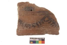 | Description / विवरण | Specimen of black on red ware with black decorative Spike curves geometric painting. |