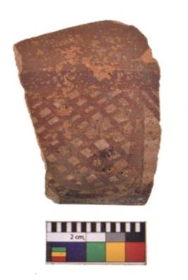 | Description / विवरण | Specimen of potsherd with decorative geometric painting. Type Red on Red Ware . |
