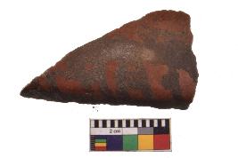 | Description / विवरण | Specimen of black on red ware with decorative geometric Group of latticed bands and acrhes painting. |