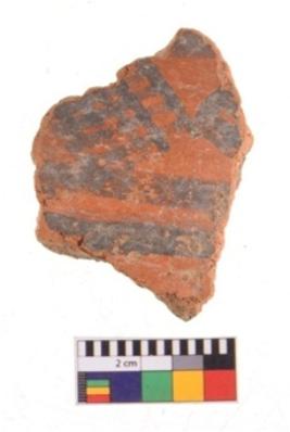 | Description / विवरण | Specimen of potsherd with decorative geometric painting. Type Black on Red ware |