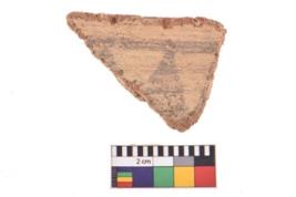 | Description / विवरण | A specimen of a potsherd. It is reddish in colour with black decorative geometric painting on it. |