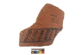 | Description / विवरण | Specimen of black on red ware with black decorative Parallel cross spike lines geometric painting. |