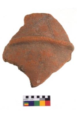 | Description / विवरण | Specimen of potsherd with decorative geometric painting. Type Black on Red ware |