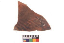 | Description / विवरण | Specimen of potsherd with black decorative geometric Linear painting, Type Black on Red Ware . |