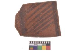 | Description / विवरण | Specimen of black on red ware with decorative geometric Oblique lines set in two horizontal bands painting. |
