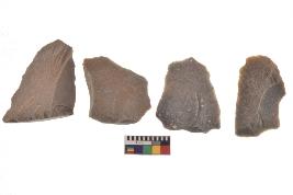 | Description / विवरण | There are n-4 of utilized flake cores. There are multidirectional irregular dominant scar pattern on both dorsal and ventral face of the cores. |