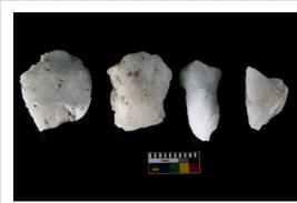| Description / विवरण | Specimen of cores with weathered cortex and several broad fluted marks. Some of them are irregular in shape, whereas some are tapering at one end. |