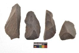 | Description / विवरण | There are n-4 of utilized flake cores. There are multidirectional irregular dominant scar pattern on both dorsal and ventral face of the cores. |