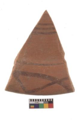 | Description / विवरण | Specimen of black on red ware with black decorative Intersecting curves geometric painting. |