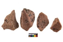 | Description / विवरण | A rectangular flake with wavy thick distal end and broken functional top. It reined pebbly cortex on one side and irregular thin edge on the other. |