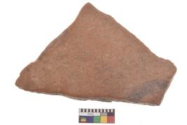 | Description / विवरण | Specimen of black on red ware with decorative geometric curve line painting. |