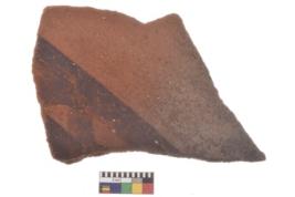 | Description / विवरण | Specimen of black on red ware with decorative geometric A row of arches over a horizontal band painting. |