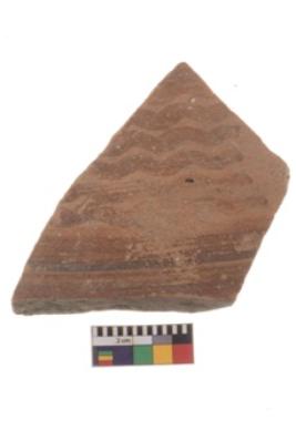 | Description / विवरण | Specimen of black on red ware with black decorative Parallel wavy lines geometric painting. |