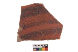| Description / विवरण | Specimen of potsherd with black decorative geometric Set of two zigzag bands painting, Type Black on Red Ware . |