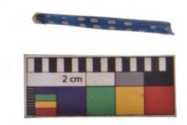 | Description / विवरण | Specimen n-1 having glossy turquoise blue surface with two dotted line design. It is circular in cross-section. |
