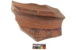 | Description / विवरण | Specimen of black on red ware with black decorative Parallel wavy lines geometric painting. |