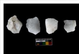 | Description / विवरण | Specimen of cores with weathered cortex and several broad fluted marks. Some of them are irregular in shape, whereas some are tapering at one end. |