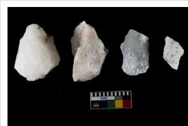 | Description / विवरण | Specimen of cores with weathered cortex and several broad fluted marks. Some of them are irregular in shape, whereas some are tapering at one end. |