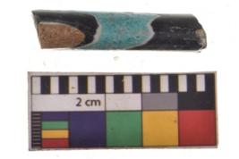 | Description / विवरण | Specimen n-1 having glossy blackish surface with coloured linear design. It is circular in cross-section. |